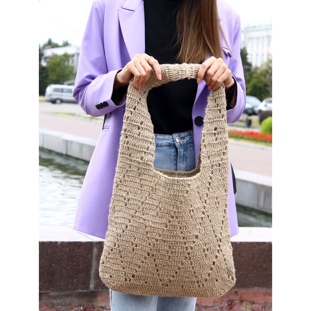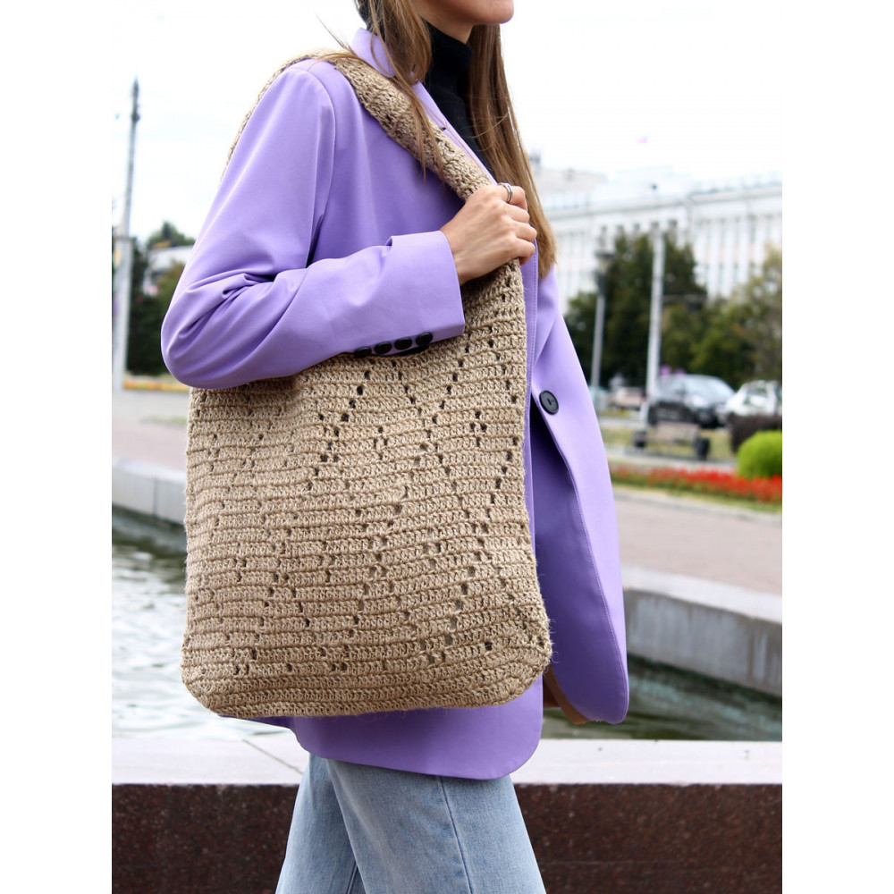Женская сумка шопер, тоут ручной работы, вязаная крючком из джута. Джут - это натуральный материал растительного происхождения. Сумочка вместительная, объемная, подходит для похода за покупками и прогулки. Вмещает в себя очень много, экологичнее, чем пластиковый пакет.