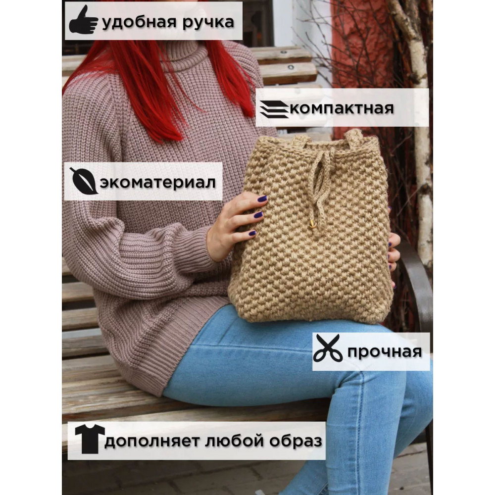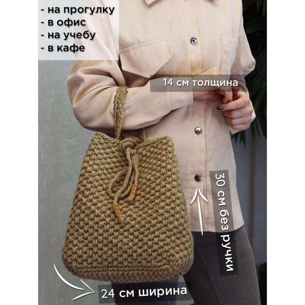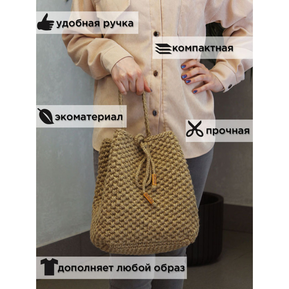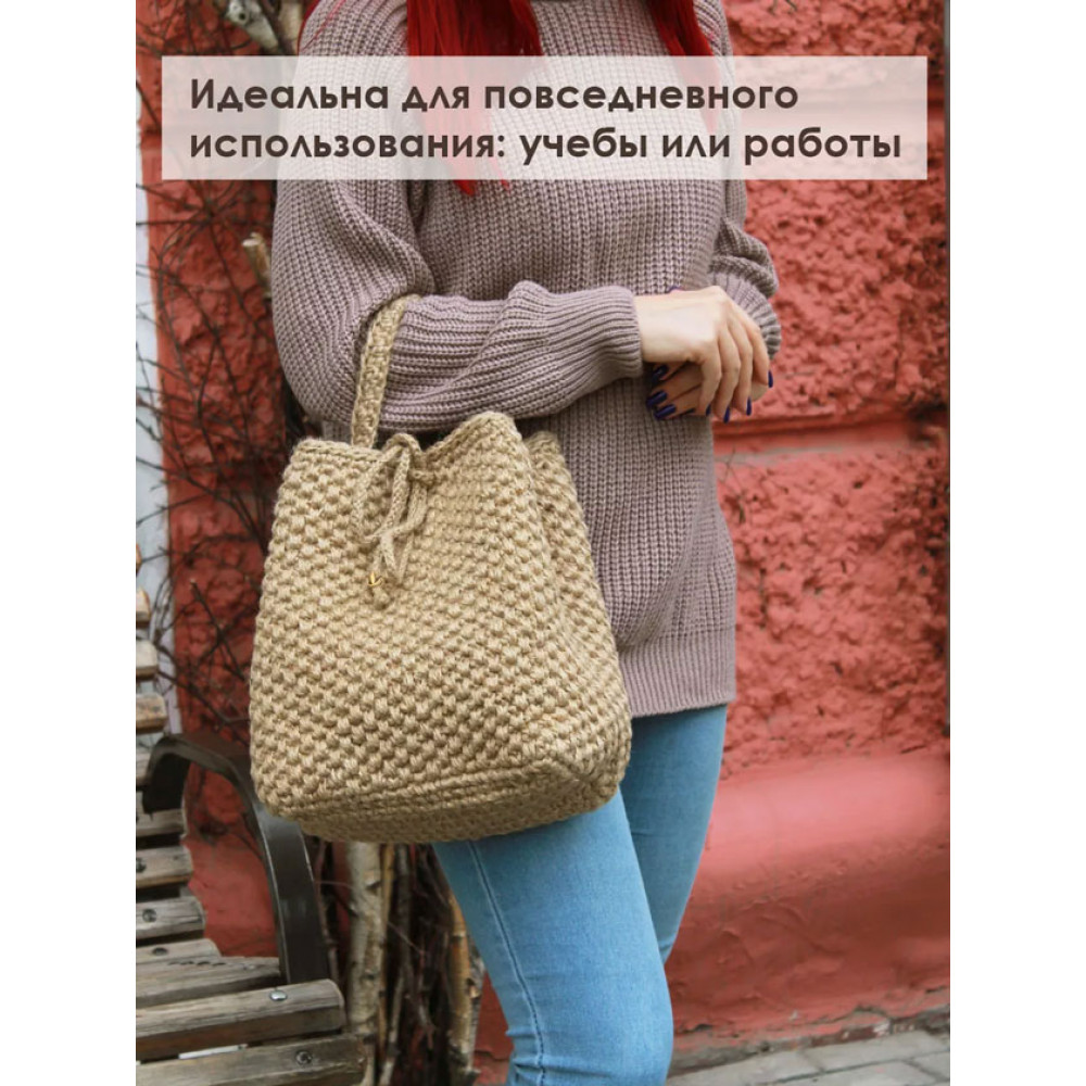 Сумка-торба женская джутовая - это отличный выбор для эко-девушек и молодежи, которые уважают натуральные материалы и следят за трендами моды. Мягкая сумка, выполненная из джутовой нити, она является идеальным решением для повседневного использования, подходит для мам и подростков, а также для учебы или небольших прогулок с документами и необходимыми вещами. Сумка не имеет подклада. Закрывается с помощью шнурка.