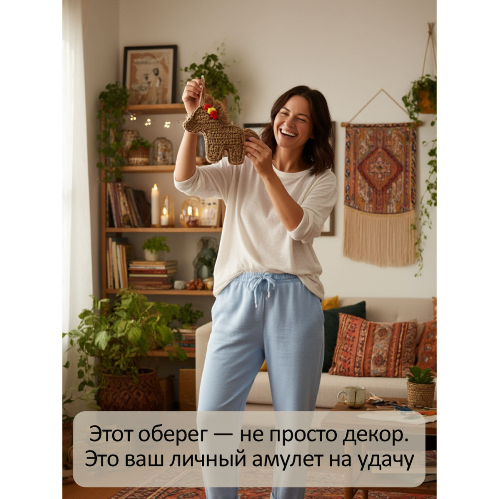 Вы в поисках талисмана, который не просто украсит дом, а станет настоящим хранителем вашей удачи? Знакомьтесь — оберег ручной работы «Лошадка» из натурального джута!