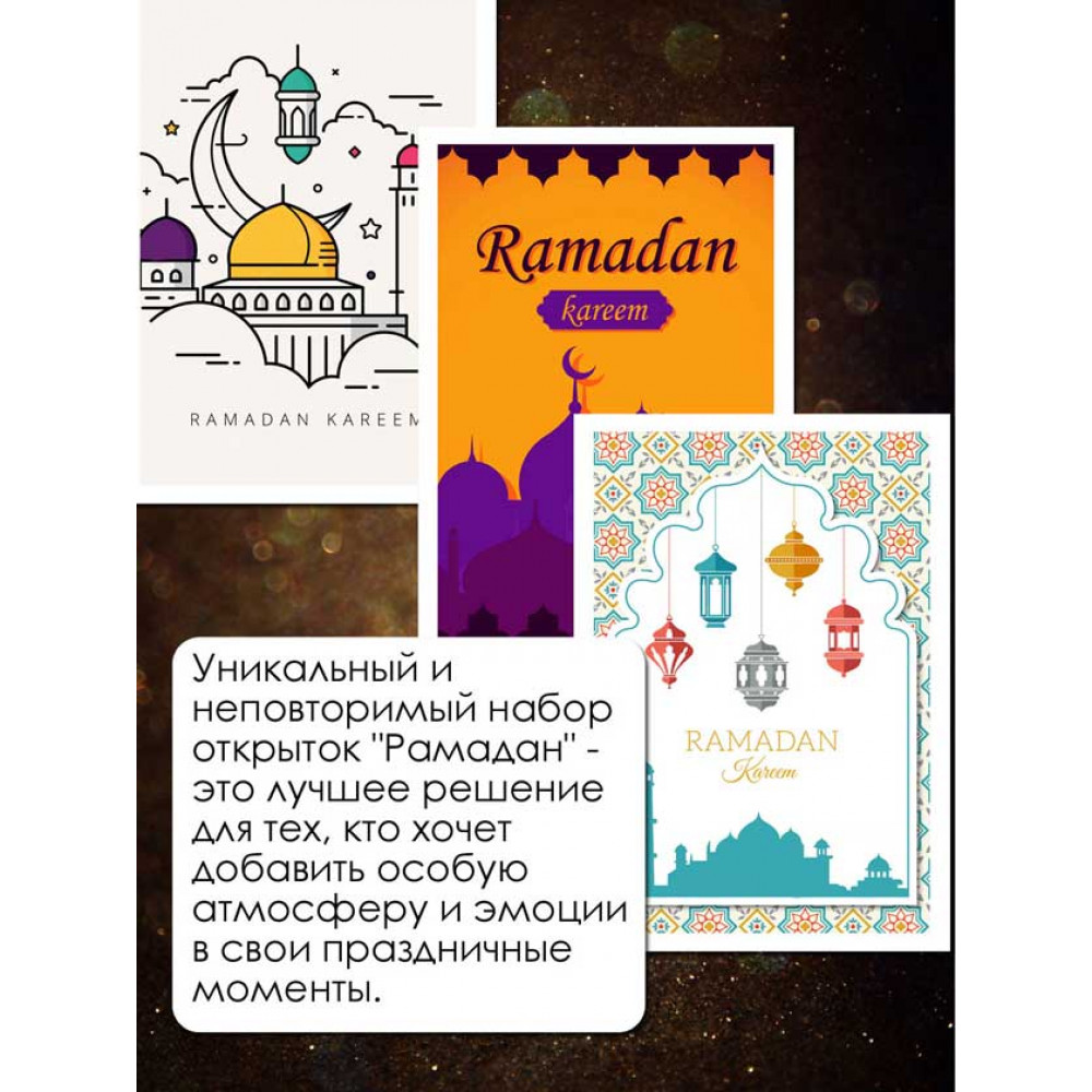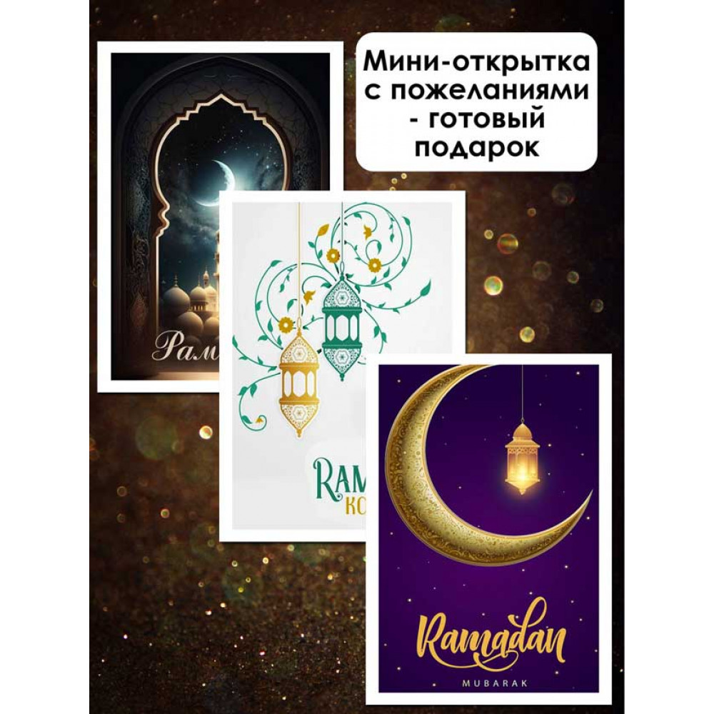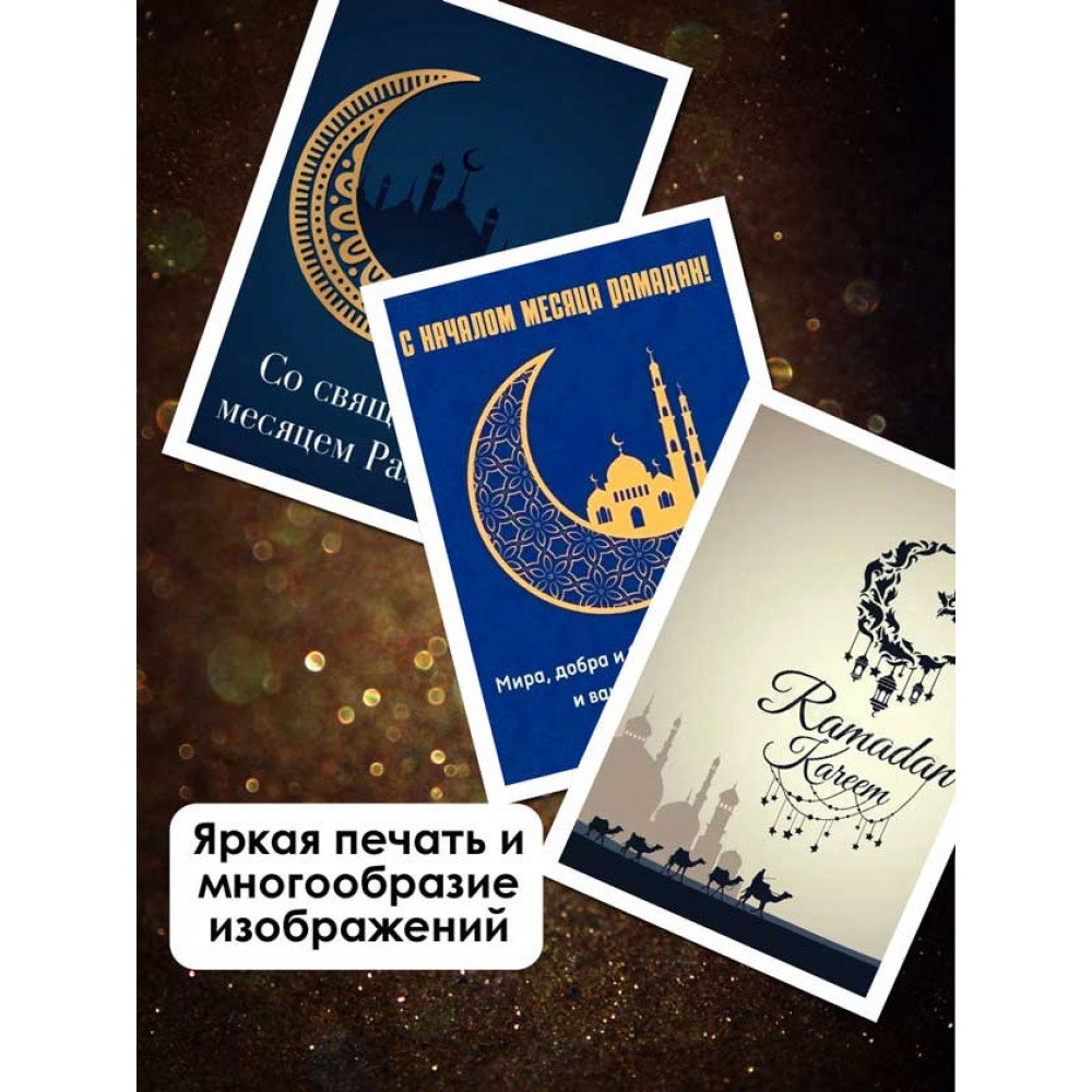 Поздравьте своих близких, друзей и коллег с наступлением священного месяца Рамадан с помощью нашего набора поздравительных исламских открыток! 32 удивительных мини-открытки размером 7х10 см созданы специально для тех, кто ценит исламскую культуру и традиции.