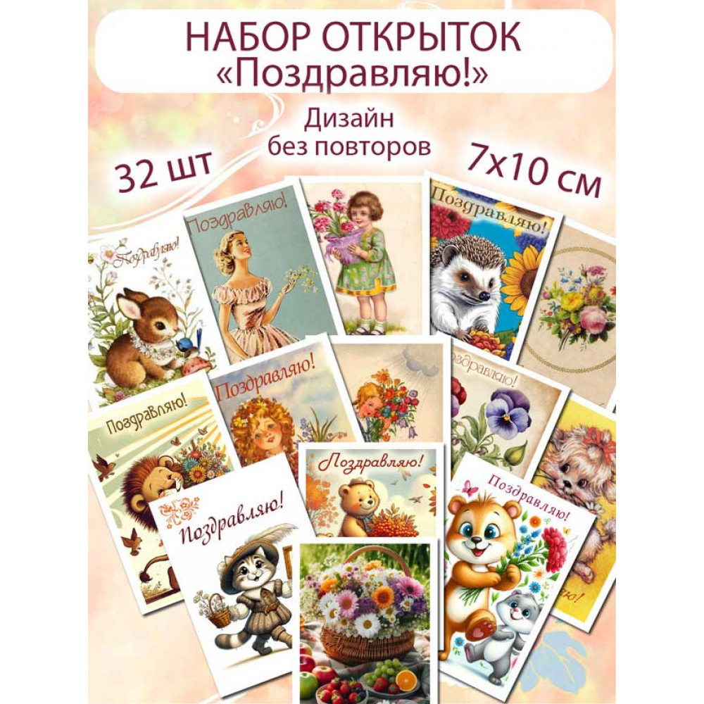 С данным набором вы получаете целых 32 открытки с разнообразным дизайном - каждая из них обладает своим уникальным шармом, чтобы подчеркнуть ваше праздничное настроение и сделать повод для поздравления более особенным.