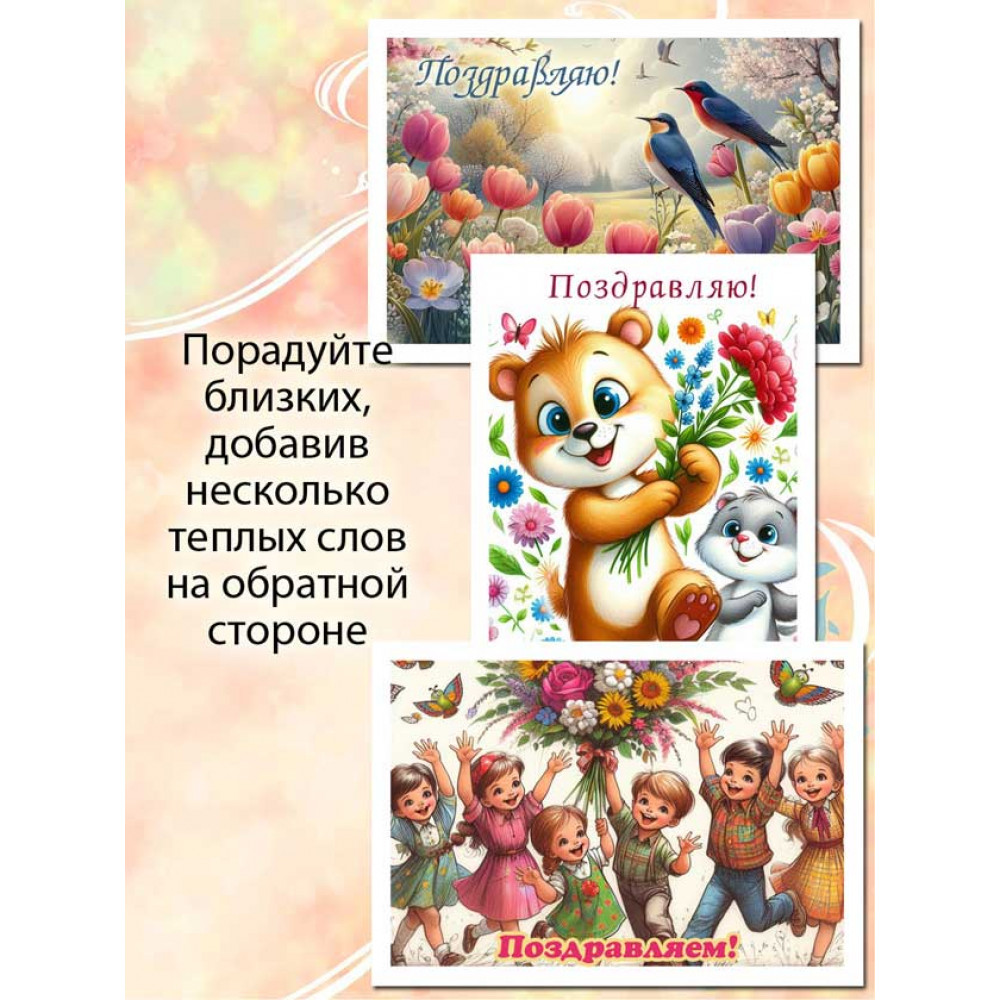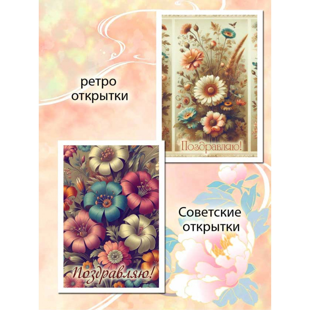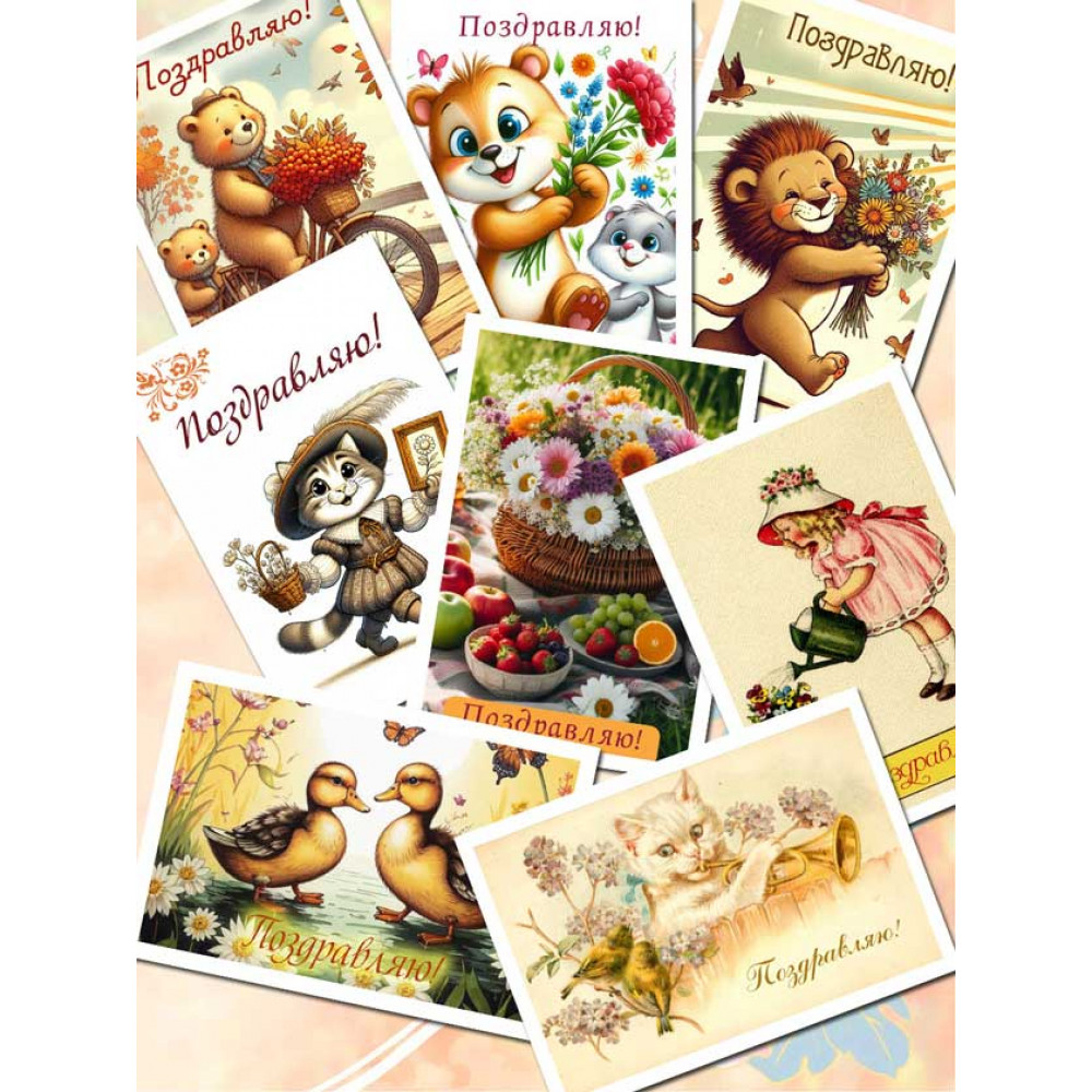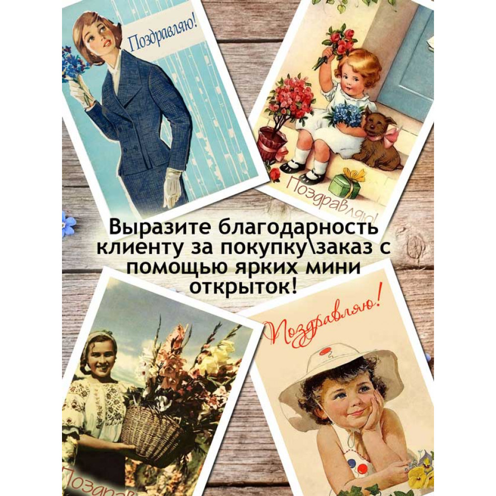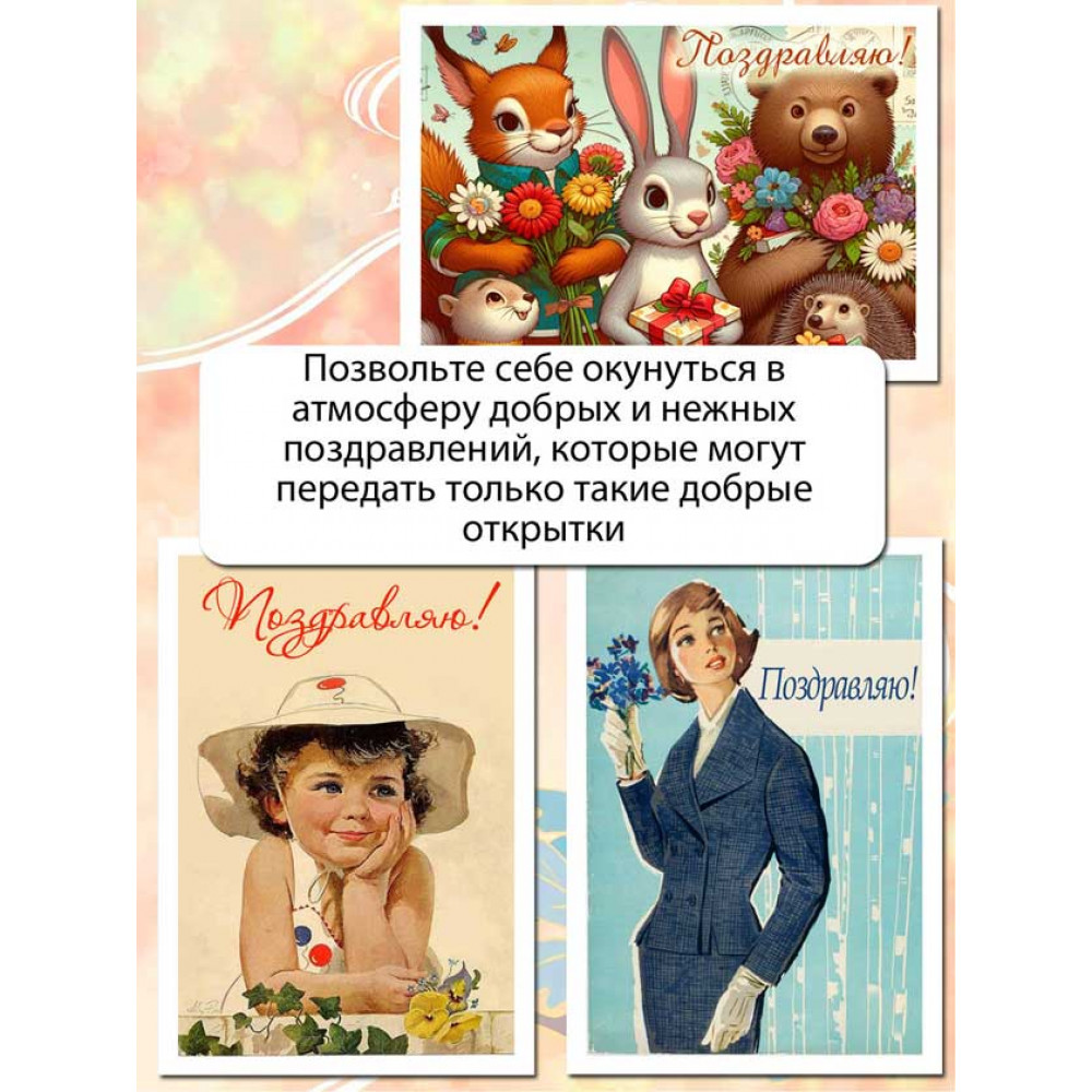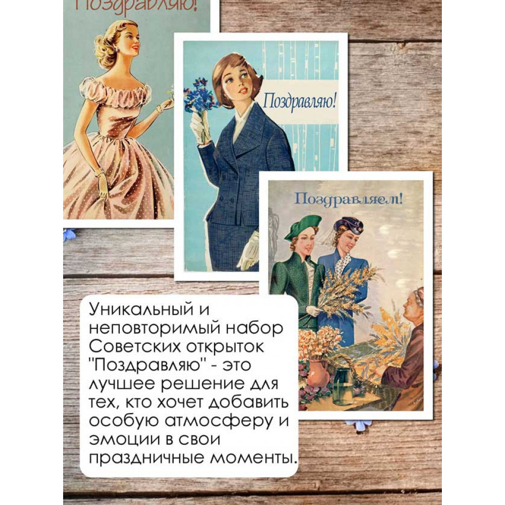 Позвольте себе окунуться в атмосферу добрых и нежных поздравлений, которые только Советские открытки "Поздравляю" могут передать. Набор станет драгоценным клише в вашей коллекции или стильным дополнением для создания атмосферы на празднике.